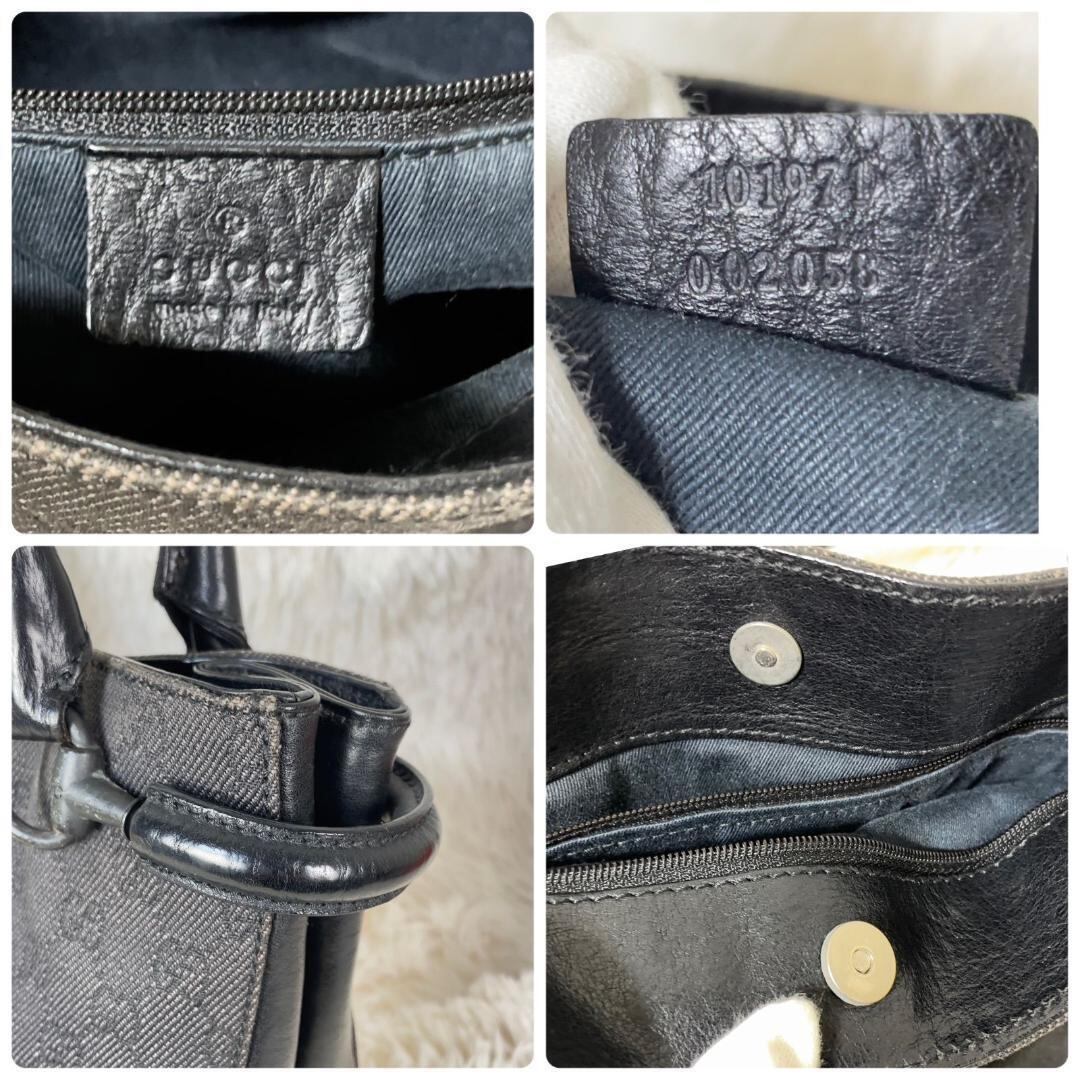 GUCCI グッチ ホースビット ショルダーバッグ キャンバス GG ブラック