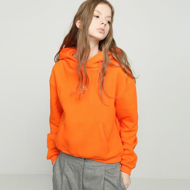 シンプルでも飽きの来ないオレンジセーターパーカー