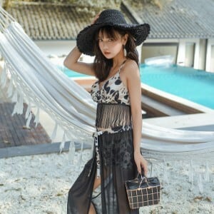 シースルーのロングパレオが大人のセクシーさを演出してくれます。