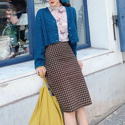 ハイウエストスカート レトロ総柄 ミディアム丈 ハイウエスト レトロ Hライン タイトスカート 総柄 花柄 スモーキー スモーキートーン くすみ ちょいくすみ くすみカラー チェック チェック柄 秋カラー 秋フレーバー 柄デビュー